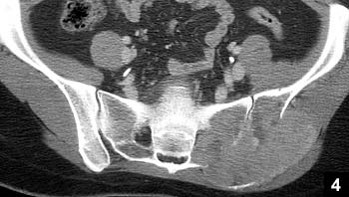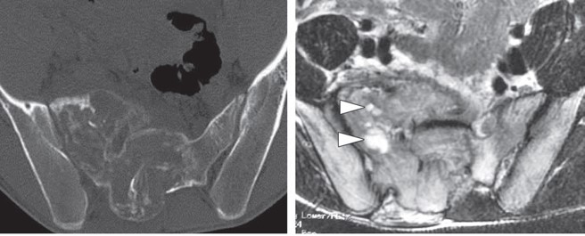 - CT:骨稜、微細な骨皮質の断裂や 、びらん