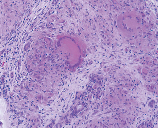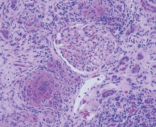 - Sarcoidosisは通常,縦隔および両側肺門部の腫大をともなって発症するが,まれに皮膚,中枢神経,軟部腫瘍で発症することがある.腎病変は,高カルシウム血症にともなう腎結石や腎障害がみられるのが一般的であるが,まれに多発性のnoduleを形成することが知られている.腎臓の多発性結節の鑑別としては,von Hippel-Lindau病に認められる腎癌,転移性腎腫瘍,悪性リンパ腫,結核等の感染症,腎盂腎炎が鑑別に上がる.今回の症例では筋肉内に比較的,均一に造影される結節が認められることからsarcoidosisの診断が示唆される.転移性腫瘍は通常,内部に壊死を伴って不均一に造影される.悪性リンパ腫ではdiffuseな筋肉の腫大を呈することが多い.Sarcoidosisの筋病変は単発性または多発性の結節を呈するnodular typeとmyopathic typeが知られている.結節型はMRIでは,T1強調像,T2強調像,造影T1強調像のいずれのsequenceにおいても中心部に不規則な星ぼう状の低信号(dark star sign)を呈するのが特徴的である.Myopathic typeではMRIでは異常信号として捉えにくいが,67Gaシンチでは筋肉に沿って瀰漫性の集積が認められる.実際の症例では皮膚,腎臓,筋肉いずれの病変からもbiopsyによりsarcoidosisの診断が得られている.腎臓の病理では系球体周囲に非乾酪性肉芽腫の形成を認め,また一部に巨細胞も認める.