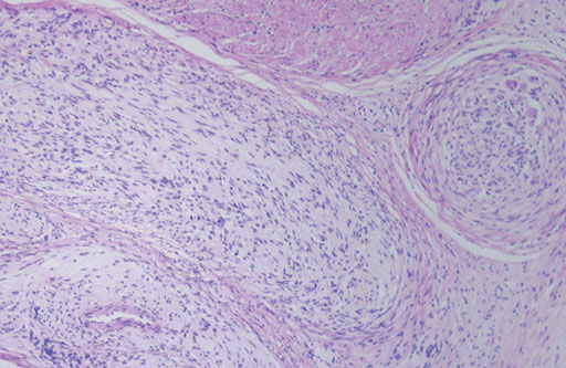 病理では膀胱の筋層内に瀰漫性に増生する神経線維腫が認められる.