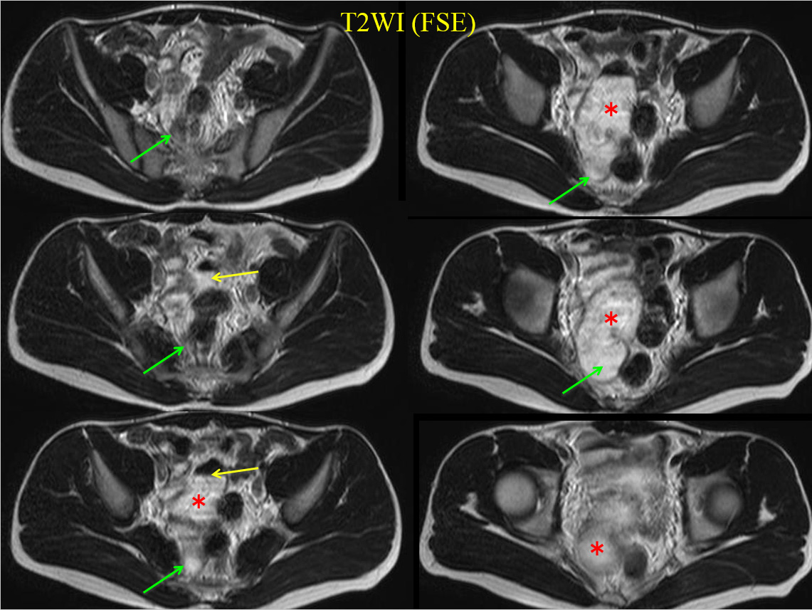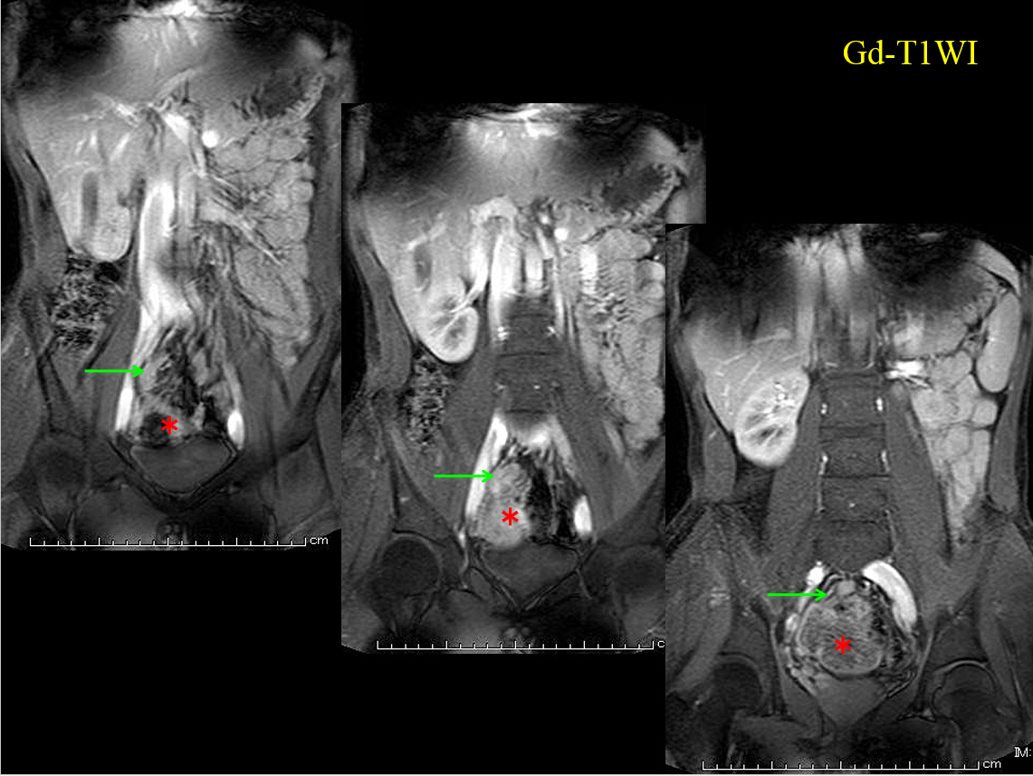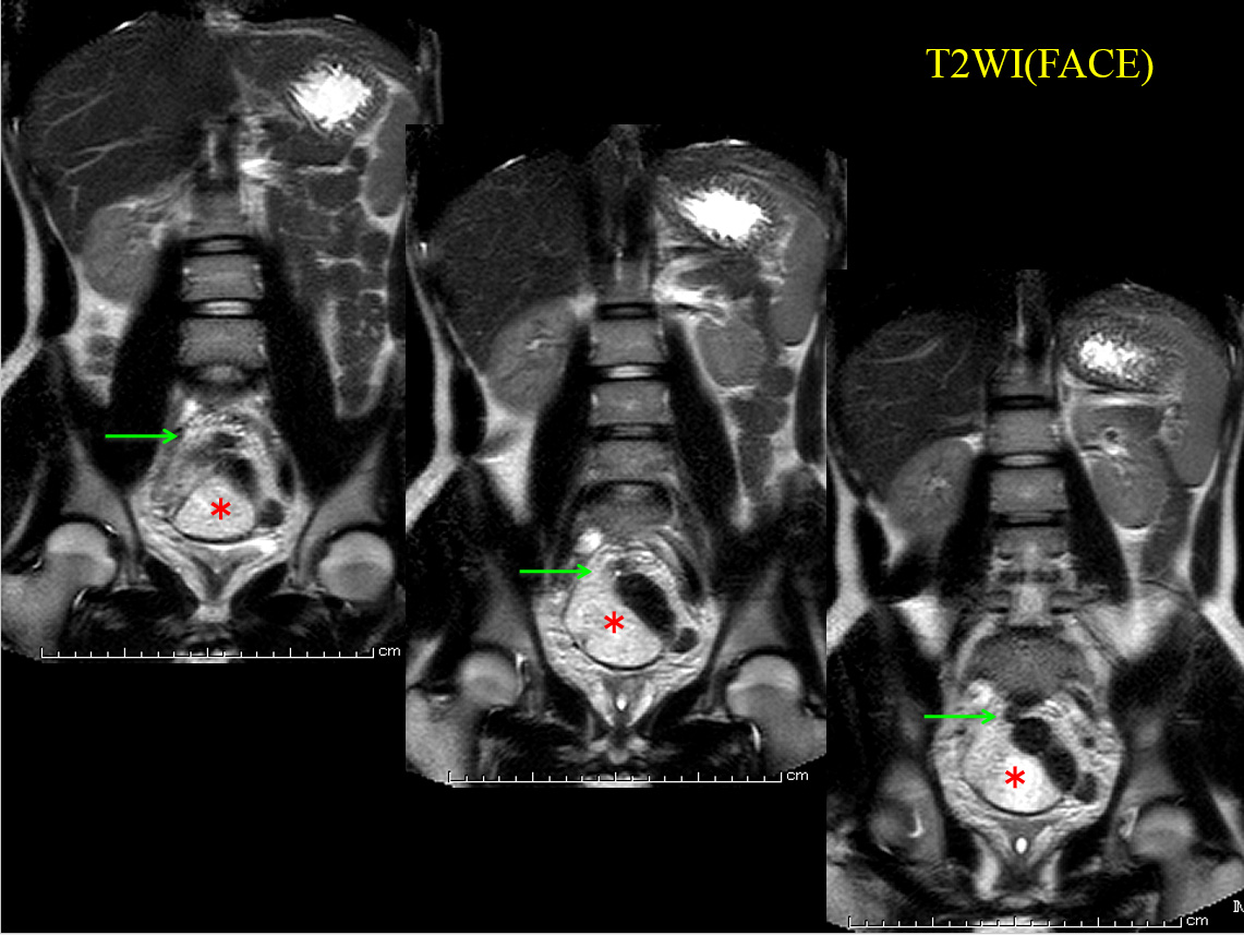 - MRI(腹部〜骨盤部)各水平断、冠状断像